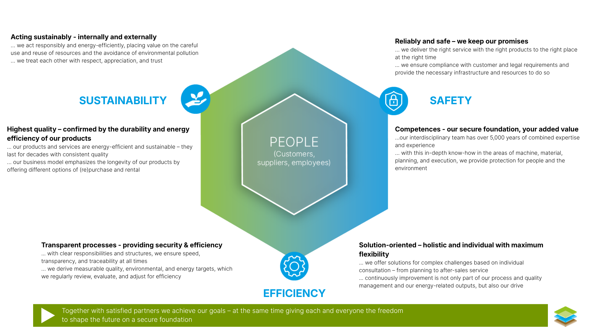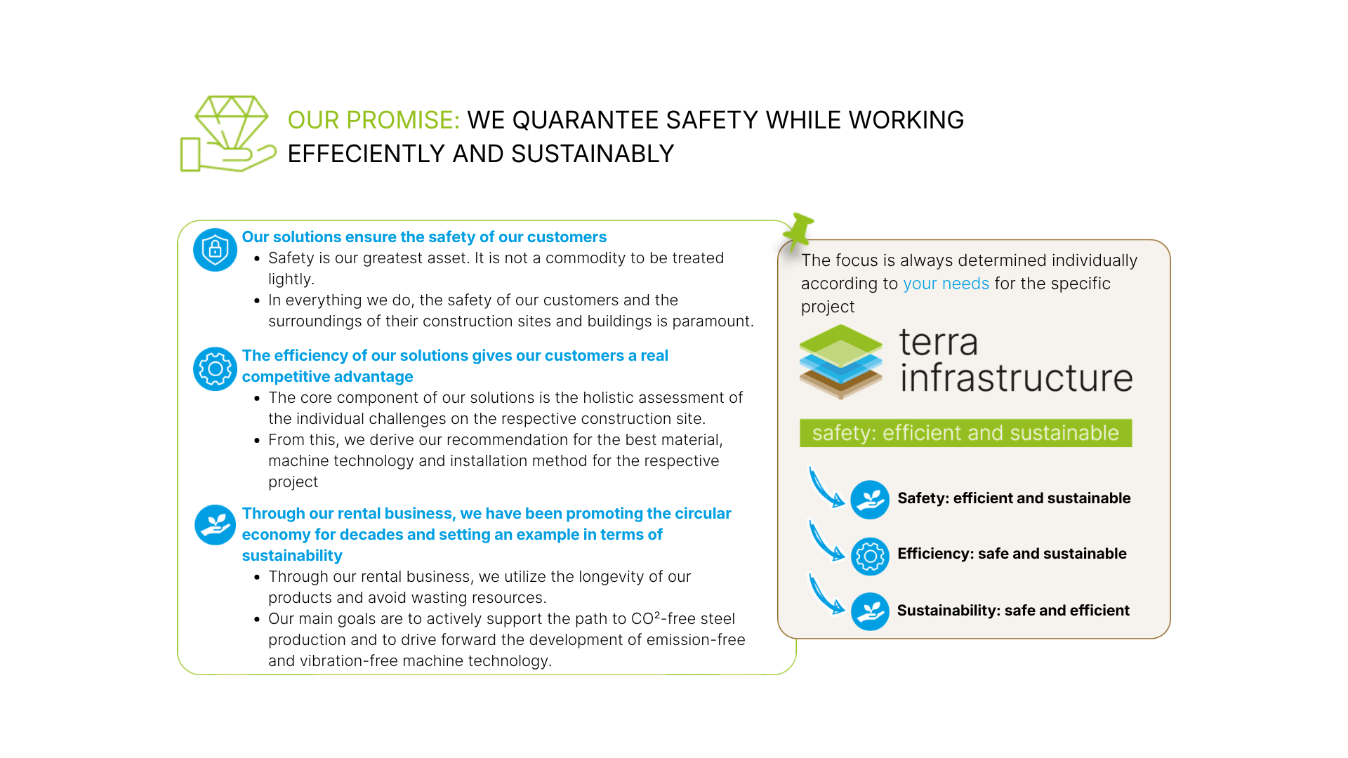 AS THE MOST INNOVATIVE SOLUTION PARTNER, WE CONTINUOUSLY ENSURE THAT SAFETY, EFFICIENCY ANS SUSTAINABILITY ARE NOT CONTRADICTION
