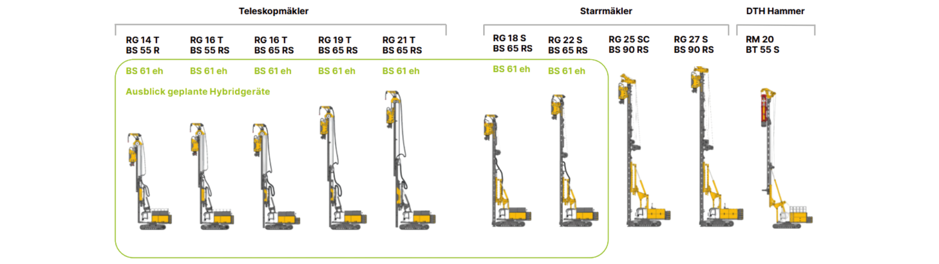 Mit unseren Produkten aus der RTG Rammtechnik der international tätigen Bauer Maschinen Gruppe sind wir Dein Spezialist für energieeffiziente Vibrations-, Ramm-, und Presstechnik. Unsere RTG Teleskop- und Starrmäklergeräte sind zur Übertragung hoher Zug- und Druckkräfte und zur Aufnahme von Drehmomenten ausgelegt. Zusammen mit den hohen installierten Motorleistungen sind sie als Trägergeräte für verschiedenste Einsatzmöglichkeiten ideal geeignet, z. B. Baugruben, Pfahlgründung und Rammarbeiten, Brücken- und Hafenbau sowie stadtnahe Baustellen mit Emissionsauflagen.